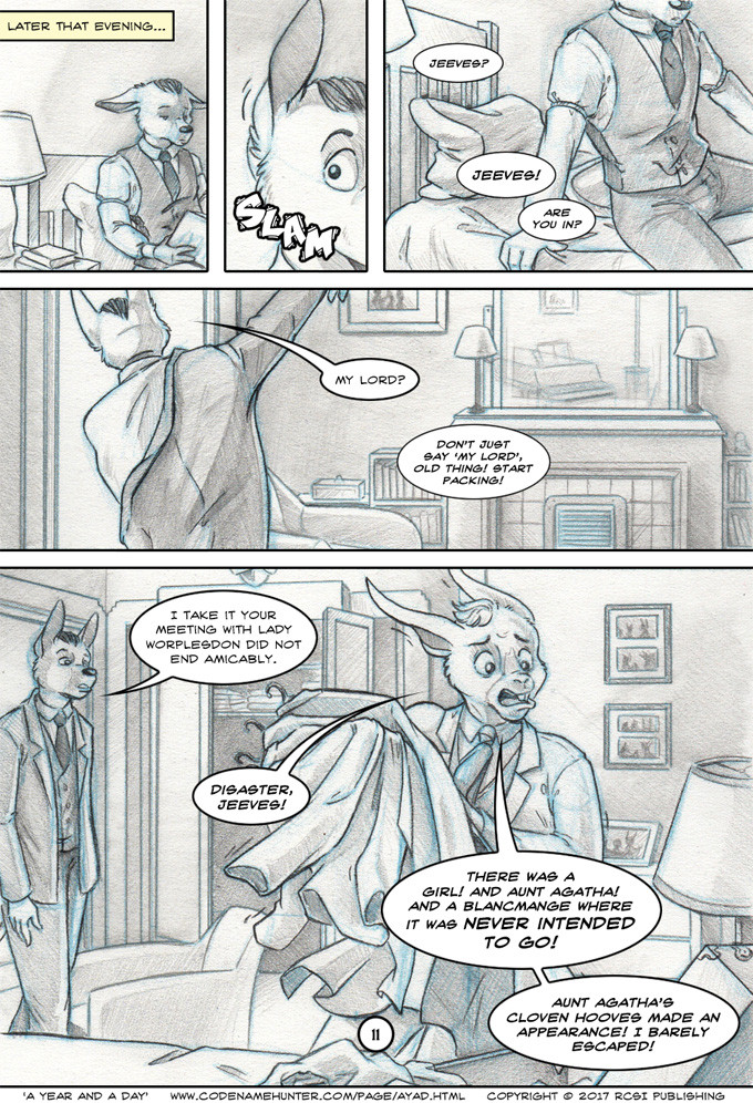 For anyone not familiar with the characters, Bertie's Aunt Agatha does not actually have cloven hooves for feet. She does have a very overbearing personality and an amazing ability to terrorize poor Bertie. She's often referred to by Bertie and his cousins, Claude and Eustace, as "the nephew-crusher". Her main goal in life seems to be seeing Bertie married off to a suitable woman of proper social standing, something Bertie is very against.